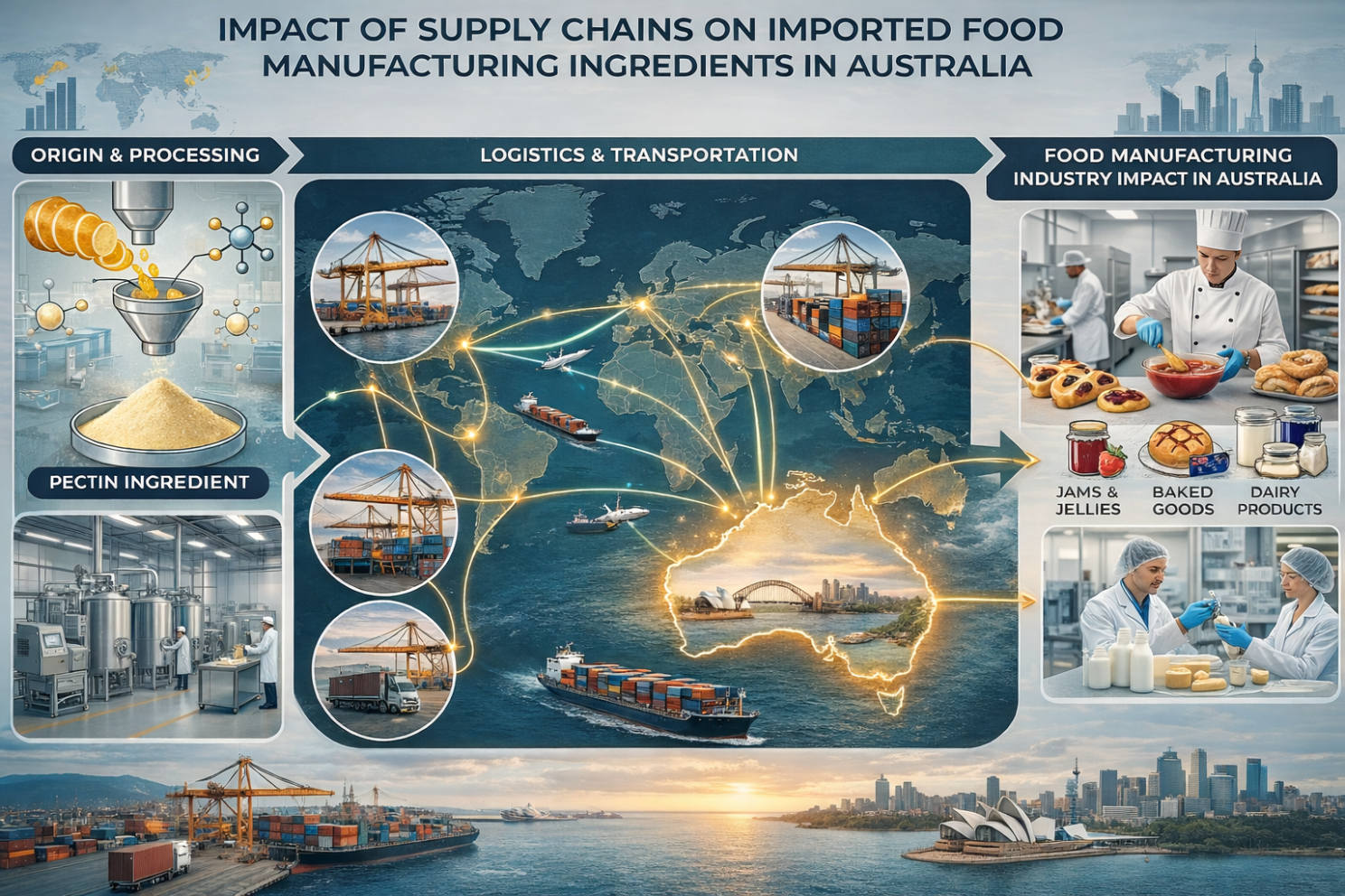 Impact of supply chains on imported food manufacturing ingredients in Australia.